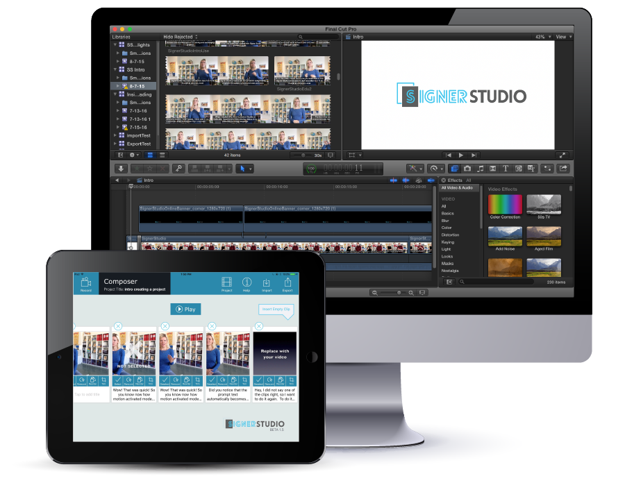 Signer Studio can export projects in FCPXML format that can be imported into Final Cut Pro. This allows you to add professional touches to your recording, including green-screen keying, titles and text effects.